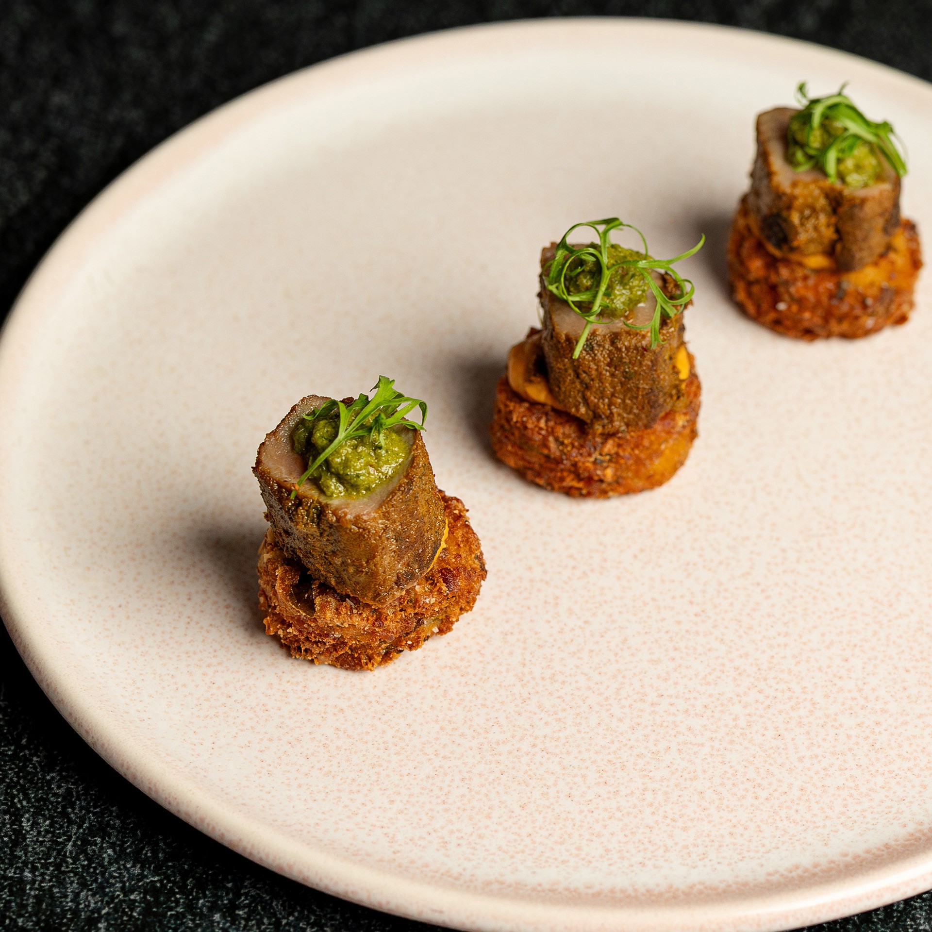 Brisbane Valley quail, Oaxacan mole, sweet corn & kelp crackling