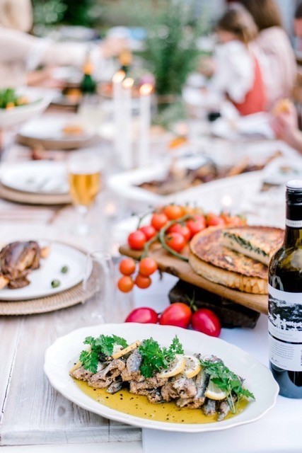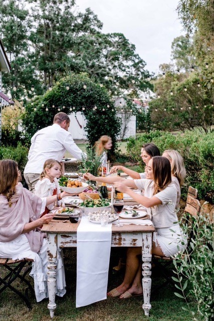 We met with Mandi in the garden of their family homestead located in the Scenic Rim to create a bespoke shared dining menu experience. The rustic garden table setting was created using crusty long baguettes, jars of green olives and a platter of light pink Tarama spread with vibrant trout pearls, lemon and dill.