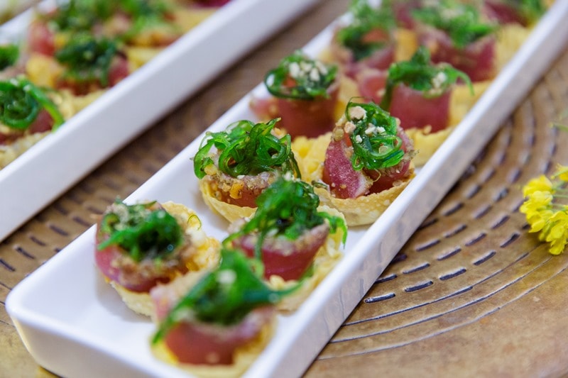 Lockyer valley pumpkin crusted Yellowfin tuna, sesame and broad bean mousse (gf)