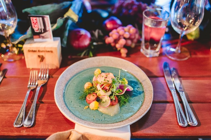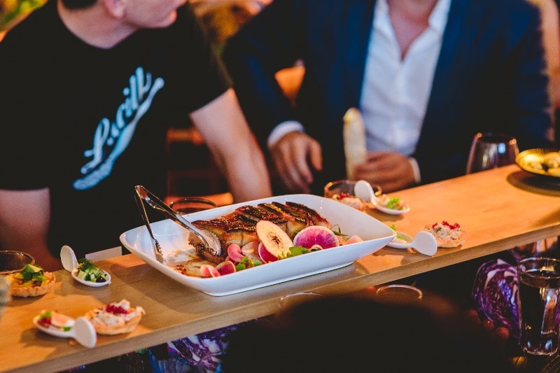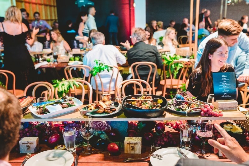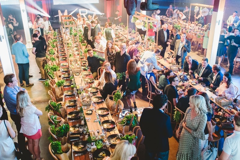 Guests flew from around Australia to attend, including acclaimed chefs and My Kitchen Rules Judges Colin Fassnidge, Manu Feildel & Pete Evans alongside other big names in Australian television. Wine & Dine’m Catering set out to impress the 150 VIP attendees with a gourmet three course feast. Brisbane function venue, Lightspace, was dressed up with an abundance of fresh produce, wooden furnishings and incredible lighting by amazing suppliers Brandition and Select Audio Visual. Definitely a lunch to remember!