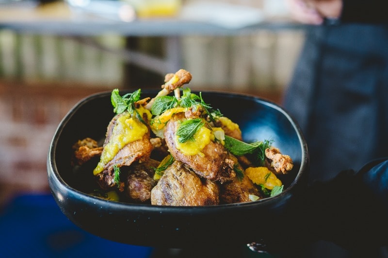 Braised crisp duck, cardamom citrus fillets, tiny mint (gf)