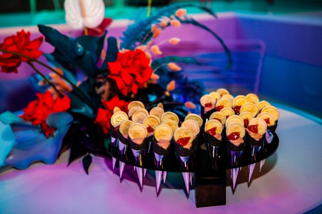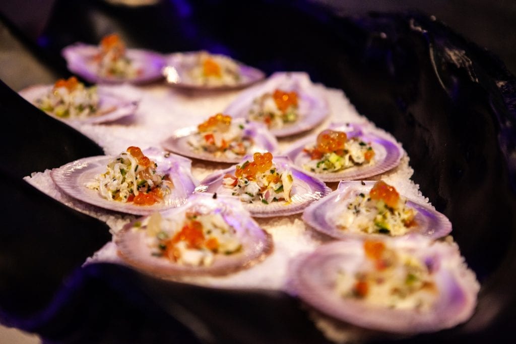 It was the perfect partnership opportunity for our chefs to innovate by designing a menu to match each of the collections in six uniquely designed areas. Our signature Ink Gin Blossom Martini was paired with the Fiumara cigar to compliment the sophistication and tonal velvets in the Cresence collection, while the Crabisicle ice-station served custom seafood canapes including the Shellfish & Citrus salad, lemonade jam with vibrant ocean pearls. The custom Dark sponge passion fruit desert was hand rolled in golden sparkles amongst the Outline Collection.