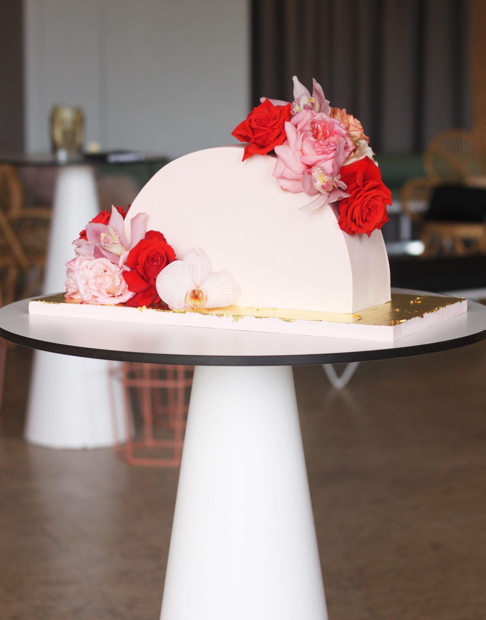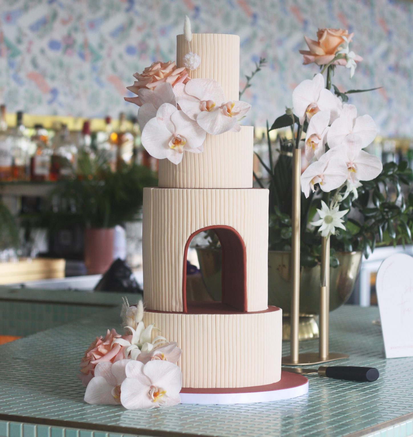 In 2020 Megan made a variety of arch-shaped cakes and adorned with them with berries, fresh and dried flowers. “A popular trend for colourful birthday and anniversary cakes, this design crossed over into weddings also. I created the below version of a standard round cake with an archway carved from it. I predict this trend will continue into 2021 and I cannot wait to explore them further!”