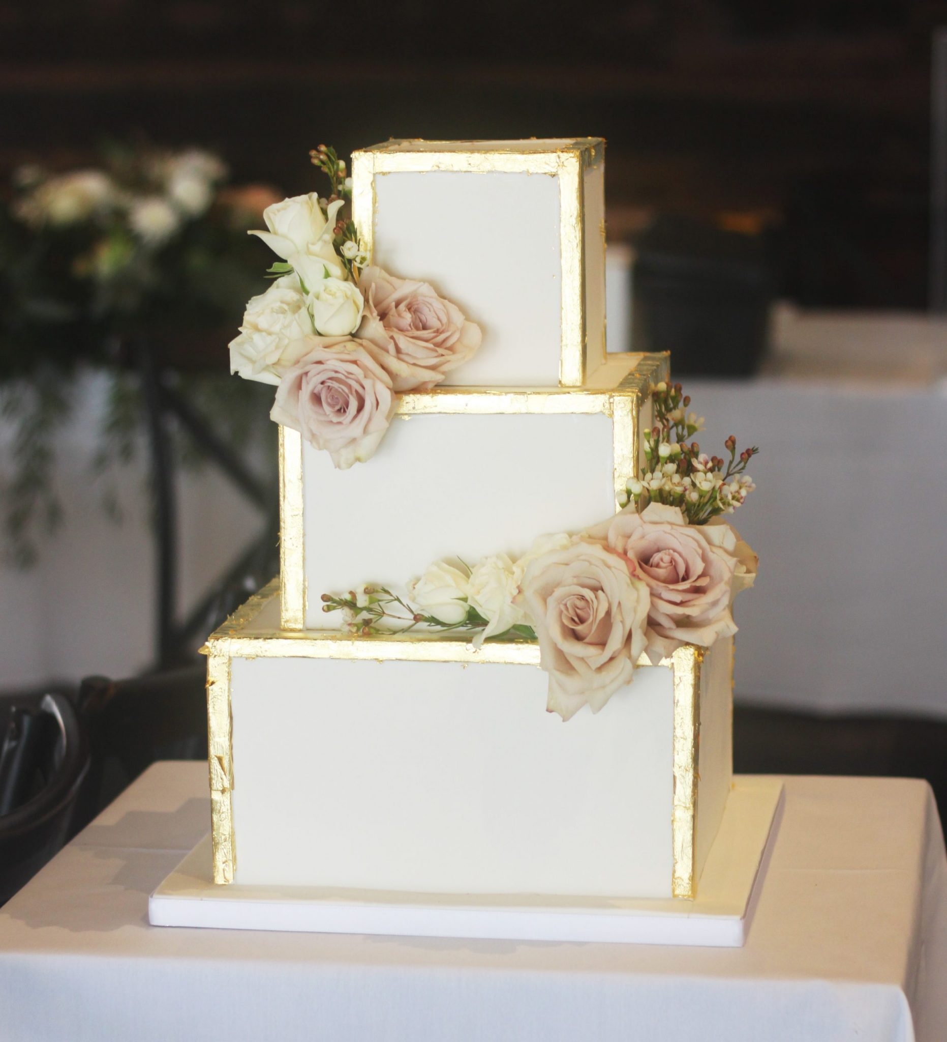 “For example, a three-tier square cake that had the same gold leaf detailing on the edges of each tier and a few fresh flowers, gives the appearance of that effortless elegance that couples will be chasing in 2021.”